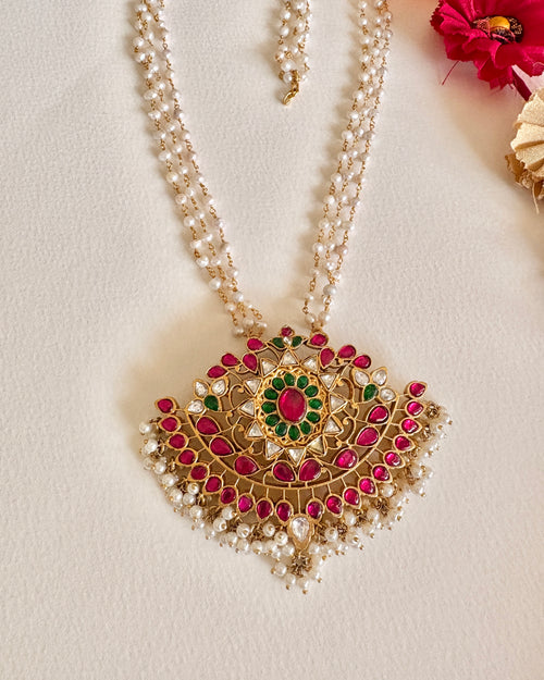 Material: 92.5 purity silver with kundan and fresh water pearls, gold polished