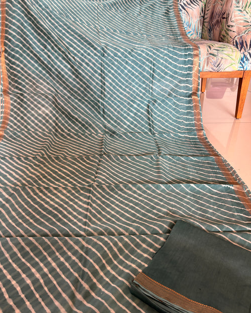Maheshwari Silkcotton Leheriya Saree - Teal